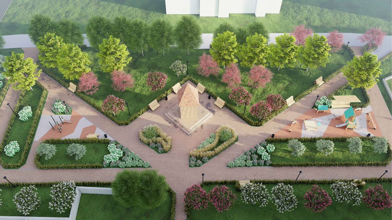 В сквере сохранят все деревья, а также дополнительно высадят 10 деревьев и почти 50 кустарников, уложат две тысячи квадратных метров газона.