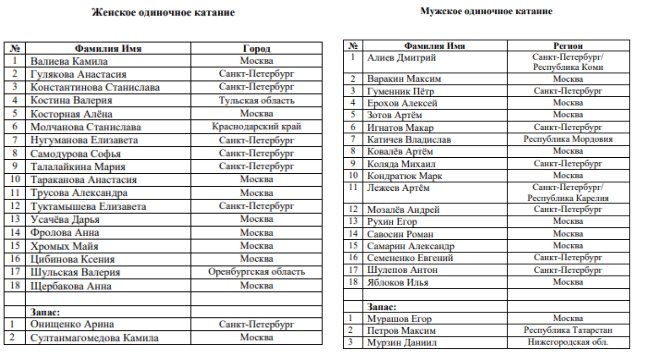 Федерация фигурного катания России назвала список участников чемпионата страны в Челябинске. В него попали 14-летняя Камила Валиева, Алёна Косторная, Александра Трусова и Елизавета Туктамышева. Помимо них в женском одиночном катании выступят ещё 14 спортсменок. В мужском катании также выступят 18 спортсменов, среди которых заявлен Михаил Коляда. В общей сложности в одиночной программе выступят 63 фигуриста, ещё пятеро заявлены как запасные.