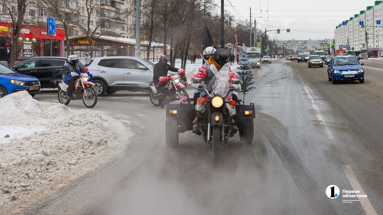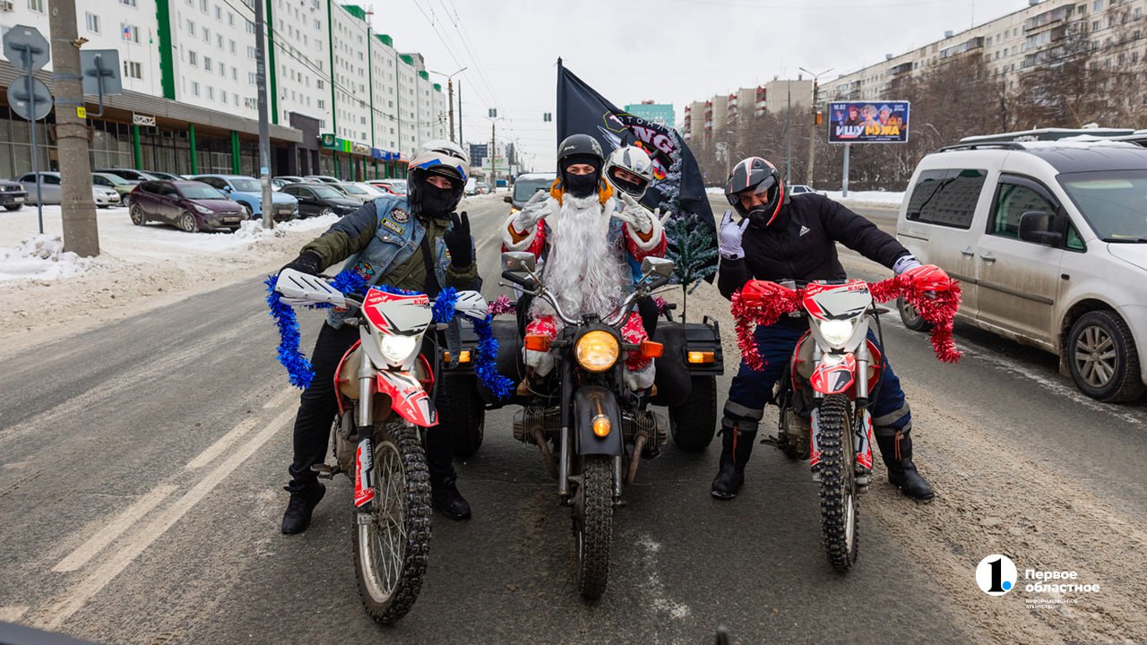 Челябинский мотоклуб Wings во второй раз провел праздничную акцию «Мотодед Мороз». Накануне «кортеж» из трех мотоциклов — старенького «Днепра» и двух кроссовых байков — проехал по ледовым городкам, чтобы поздравить жителей, прежде всего юных, и вручить подарки.