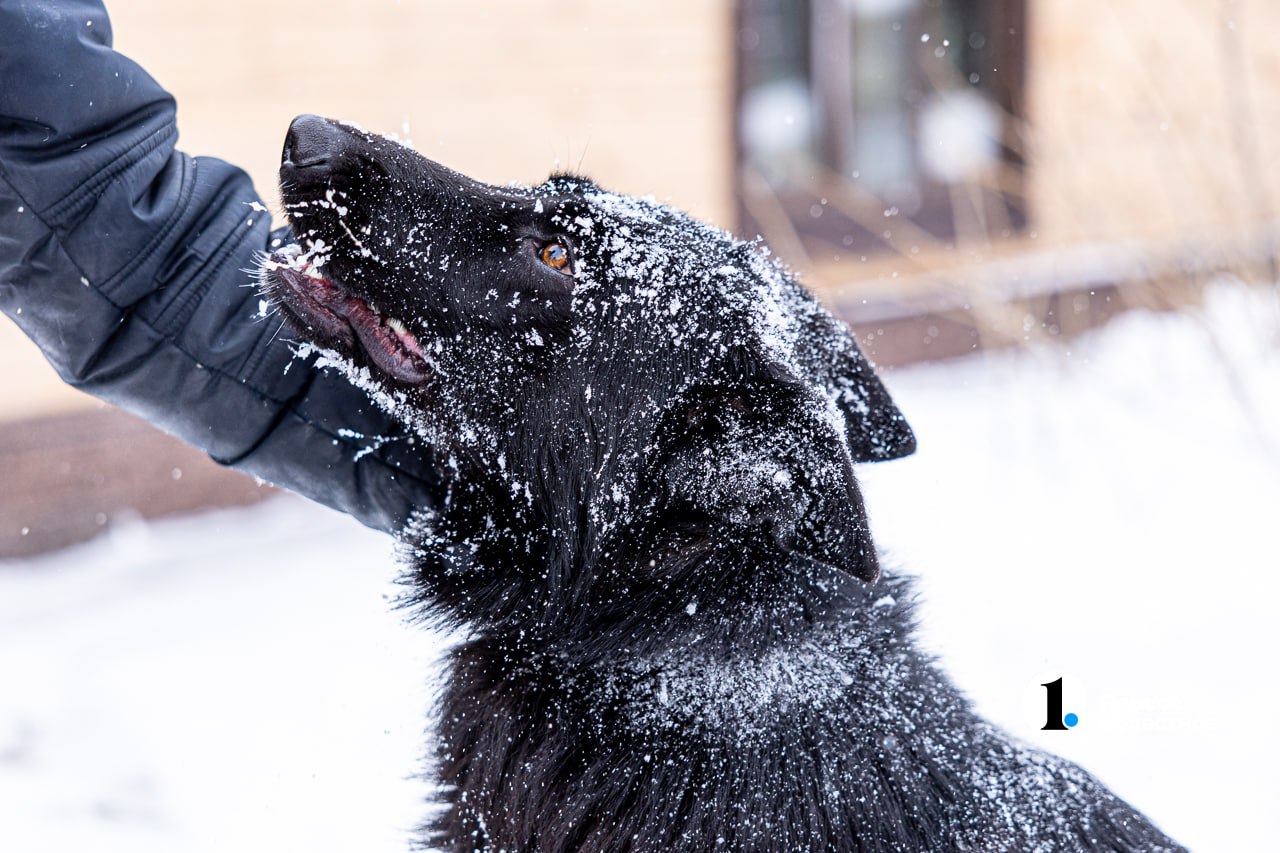 Она обожает играть: летом с водой, зимой со снегом. Собака купается в снегу, а потом с наслаждением отряхивается.