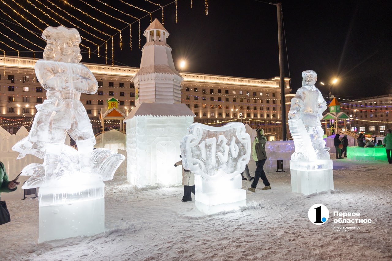 Чтобы попасть в городок, надо пройти главные ворота. На входе встречает Надпись на льду: «290. Челябинск, с юбилеем!». Тему южноуральцы выбрали сами голосованием на платформе обратной связи.