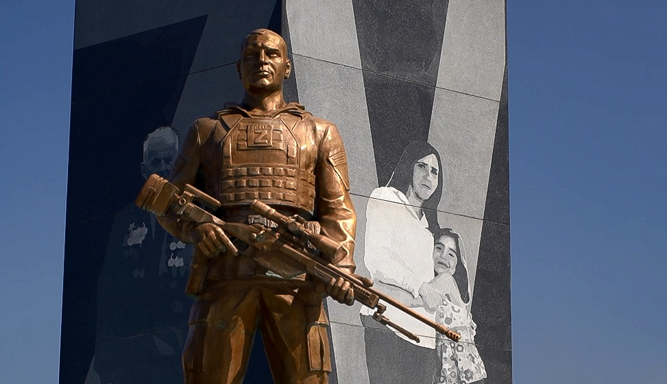 Основой для памятника в селе Долгодеревенском Сосновского округа стал образ реального военнослужащего, Героя РФ (посмертно) Андрея Мосина.