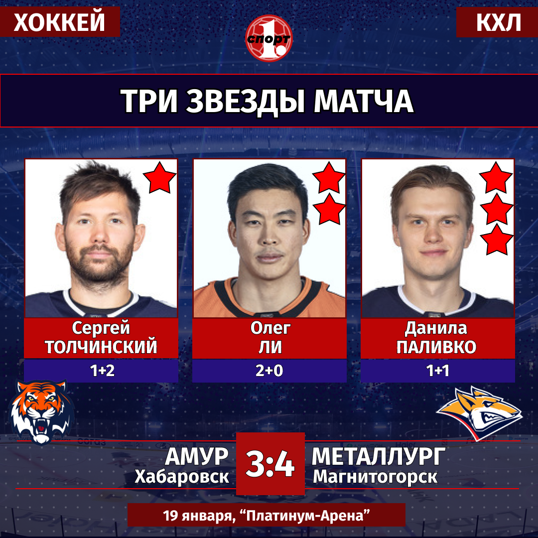 Хоккей. Сезон-2025/2026. Чемпионат КХЛ. 19 января. «Амур» (Хабаровск) — «Металлург» (Магнитогорск) — 3:4 (0:1, 2:0, 1:3).