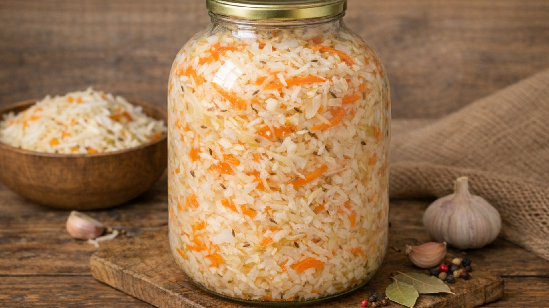 Квашеная капуста — традиционное блюдо русской кухни, представляющее собой продукт естественного брожения свежей белокочанной капусты, в результате которого образуются полезные бактерии и ферменты, улучшающие пищеварение и укрепляющие иммунитет.