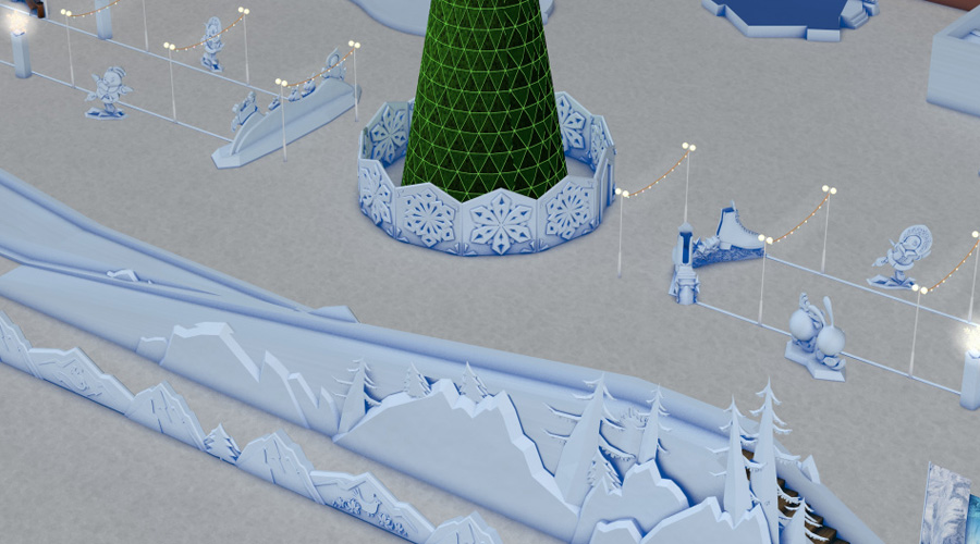 В центре городка расположили главную елку, она окружена надежным забором из ледяных снежинок.