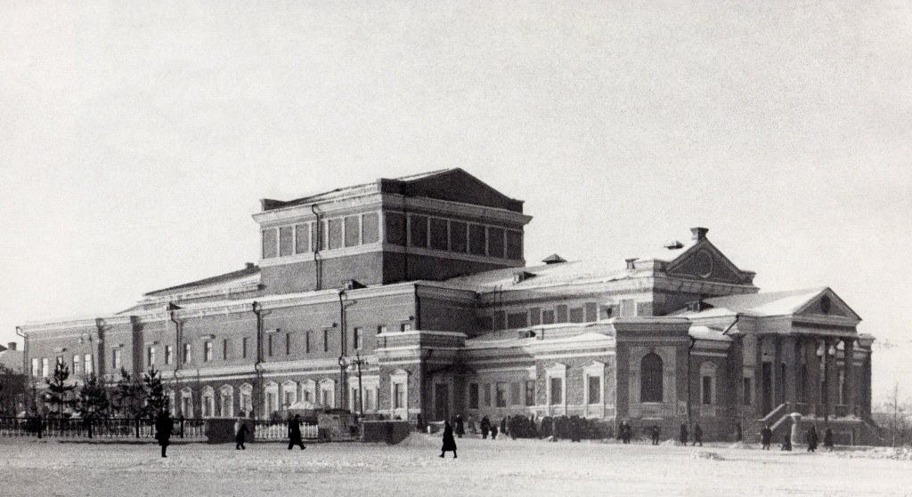 В начале сентября 1944 года сообщалось, что в ходе реконструкции здания драматического театра ранее три отдельно стоящие постройки были объединены в один комплекс. По проекту гардеробные должны были перенести под зрительный зал. Лестницу, которая ведет в театр, планировали разобрать. Вместо нее предполагалось устроить главный вход с тремя дверями и портиком из колонн.