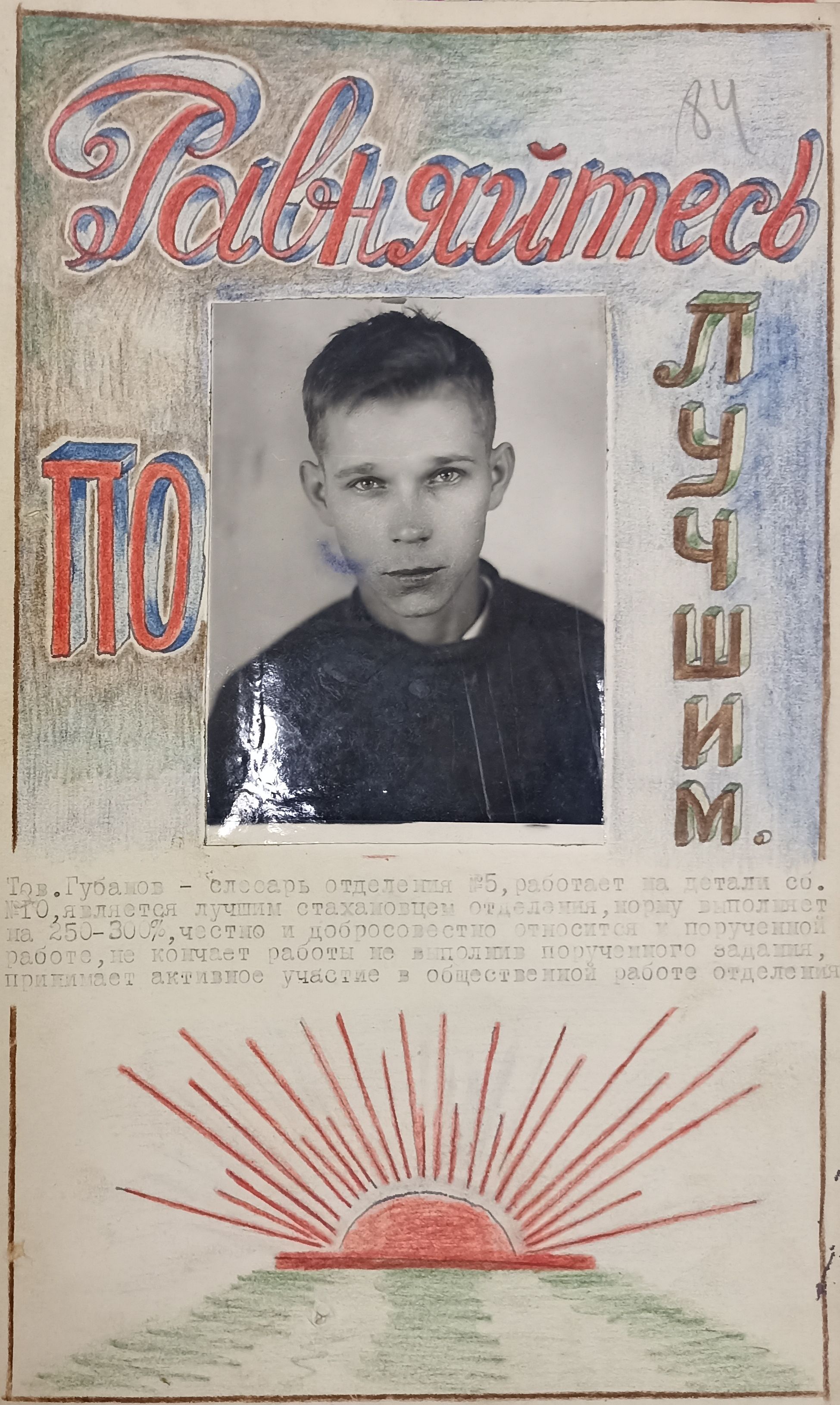 Плакат в поддержку передовика производства. Такие мог рисовать на заводе