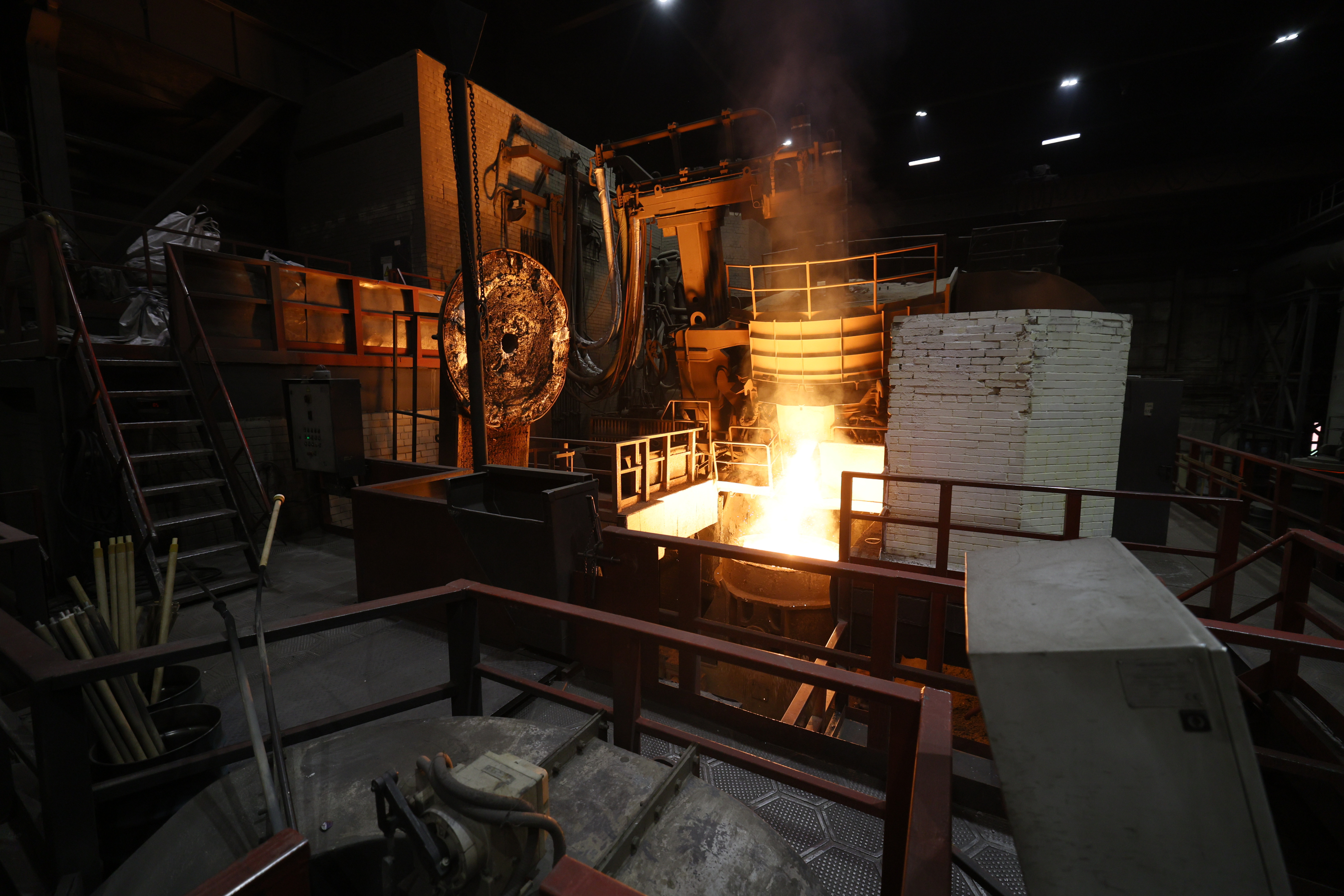 Губернатор Алексей Текслер продолжает знакомить министра промышленности и торговли РФ Антона Алиханова с передовыми предприятиями областной столицы. Следующая точка — индустриальный парк «Станкомаш» (входит в состав промышленной группы «КОНАР»). Здесь главе Минпромторга продемонстрировали слив металла из дуговой сталеплавильной печи в ковш и криогенные испытания арматуры, передает корреспондент ИА «Первое областное».