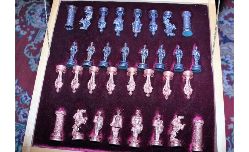 И еще два примечательных объявления с «Авито» — коллекционные шахматы за 500 и 480 тысяч рублей. В первом случае — шахматы «Адмиральские» из бронзы и позолоченные на доске из яшмы. Второй вариант — «Рыцари» с фигурами из художественного литья, с покрытием гальванической медью и на доске из массива.
