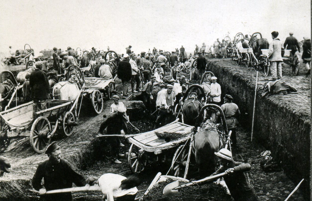 «Площадка в июньские дни 1930-го напоминала гигантский муравейник. Повсюду — люди с повозками», — гласит запись в книге «Летопись Челябинского тракторного». Первые строители ЧТЗ столкнулись с отсутствием техники, жилья и медицинской помощи. Несмотря на это, с помощью кирки и лопаты за два месяца рабочие выровняли участок для закладки цехов, убрали полмиллиона кубометров земли. Лишь осенью на площадку прибыли экскаватор, траншеекопатели, грейдер, катки, подъемные краны. В 1930 году на строительство прибыло 43 тысячи рабочих, а выбыло — 38 тысяч.