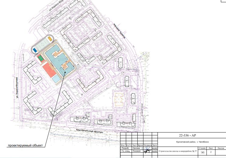 Школу в границах улиц Хариса Юсупова и Маршала Чуйкова и Краснопольского проспекта (территория жилого комплекса «Новое поколение») построят трехэтажной. Учиться там смогут 1100 юных южноуральцев. Здание будет состоять из трех блоков — для начальных (400 мест), средних и старших классов (700 мест). Фасад ориентируют на улицу Хариса Юсупова. Территория и здание школы являются безбарьерной средой для маломобильных групп населения.