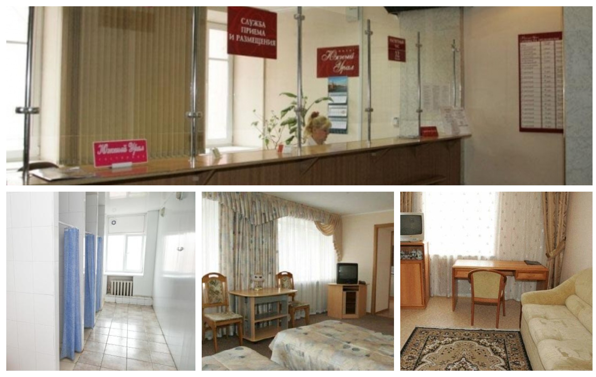 Так выглядели стандартные номера гостиницы «Южный Урал», ресепшен и общий душ. Источник: hotels.ru