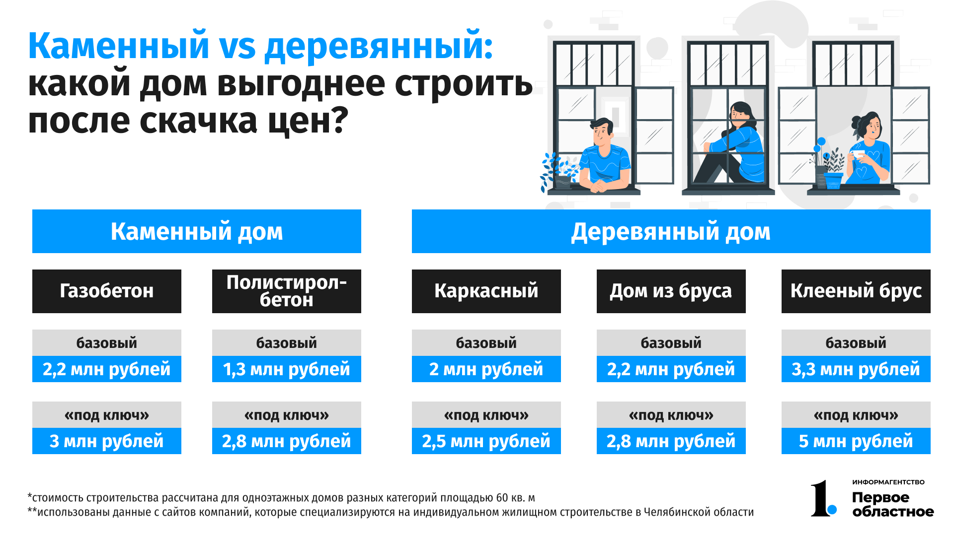 «В домах из бревна и клееного бруса в большом объеме используется древесина и пиломатериалы, поэтому покупать сейчас их крайне невыгодно. К тому же такие дома очень быстро выходят из строя: теряют внешний вид, выглядят неэстетично, если отсутствует специальный уход. В категории деревянных домов выбор стоит остановить на каркасных строениях, поскольку в них пиломатериалы применяют только для возведения каркаса: цена стартует от 1,5 млн рублей в базовой комплектации за 60 кв. м. Все утверждения о непрочности таких конструкций — слухи, в Челябинской области их срок эксплуатации очень высок», — говорит Денис Антропов.