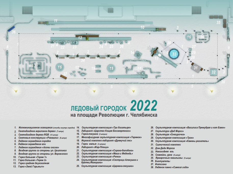 Напомним, в 2019 году челябинцы выбирали в качестве главной темы героев мультфильмов, и на площади Революции в декабре были представлены Бременские музыканты, Гуси-лебеди, Маугли. В 2020 году ледовый городок был посвящен космосу.