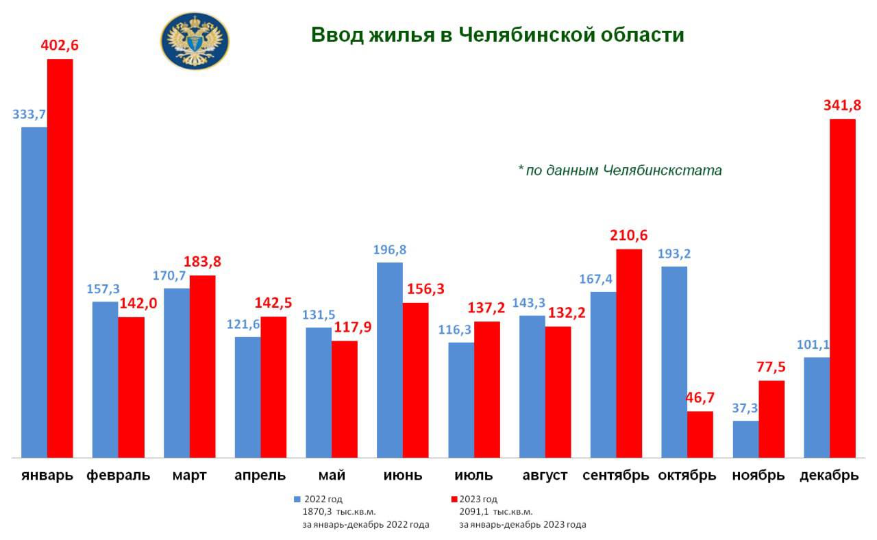 Показатель 2023 года стал для Челябинской области рекордом с начала 21 века. К тому же это на 19% выше запланированного федеральным проектом «Жилье» нацпроекта «Жилье и городская среда» (реализуется по инициативе президента). Ранее более двух миллионов квадратных метров жилья вводили в эксплуатацию лишь дважды: в 2008 году — 2,024 миллиона, в 2014-м — почти 2,002 миллиона квадратных метров.