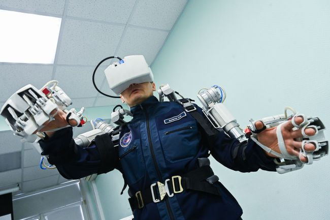 По замыслу разработчиков, система управления роботом будет находиться внутри станции. Космонавт облачается в задающее устройство копирующего типа и использует очки виртуальной реальности, чтобы управлять действиями «Теледроида», установленного снаружи.