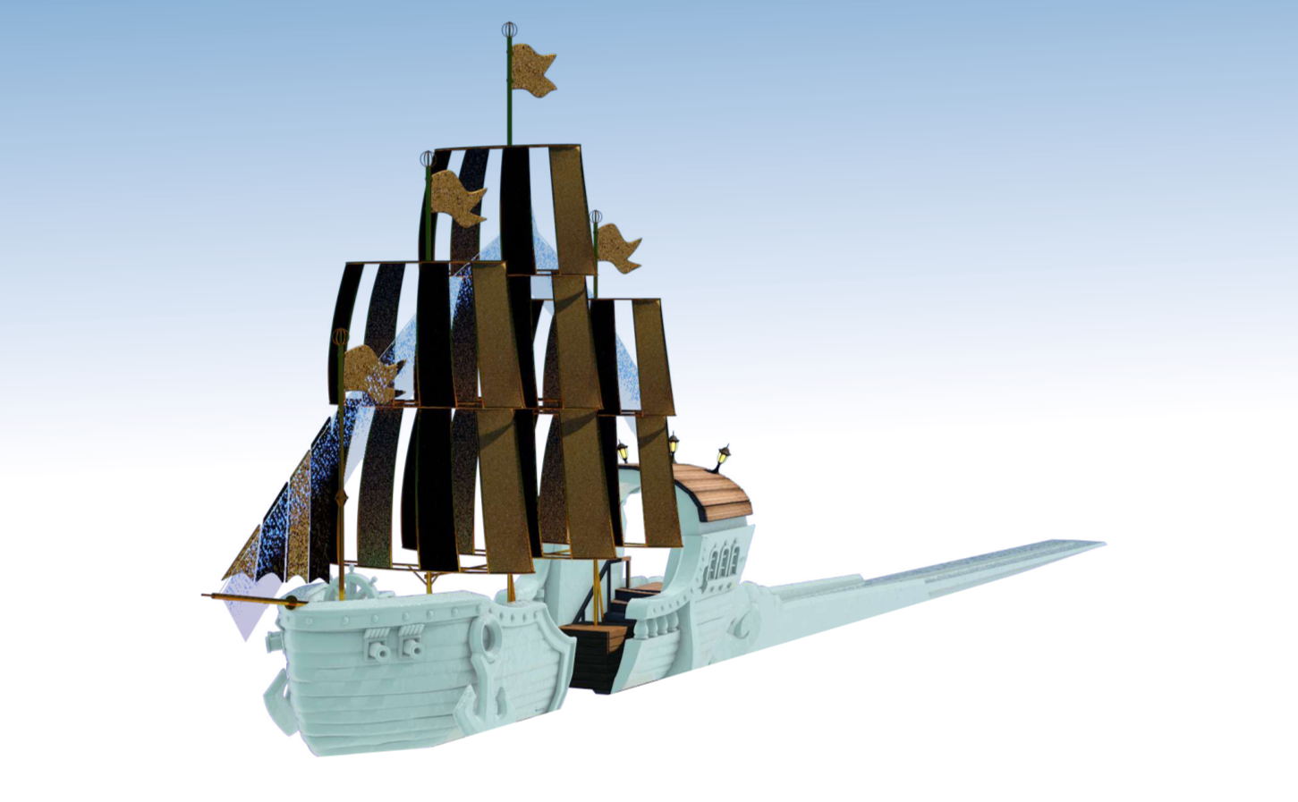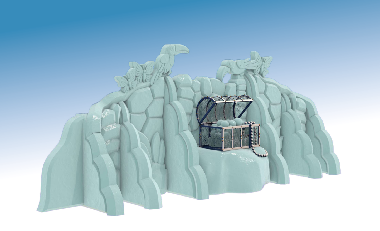 В городке будет шесть горок — в форме хижин, осьминога и корабля, световые конструкции «Пальма» и «Сундук», три лабиринта, тематические скульптуры и фотозона и, конечно же, герои одноименного популярного советского мультфильма: доктор Ливси, Билли Бонс, Джим Хокинс. Ледяные ограждения тоже поддержат общую концепцию — их сделают в виде волн, пальм, кораблей и гигантских рыб.