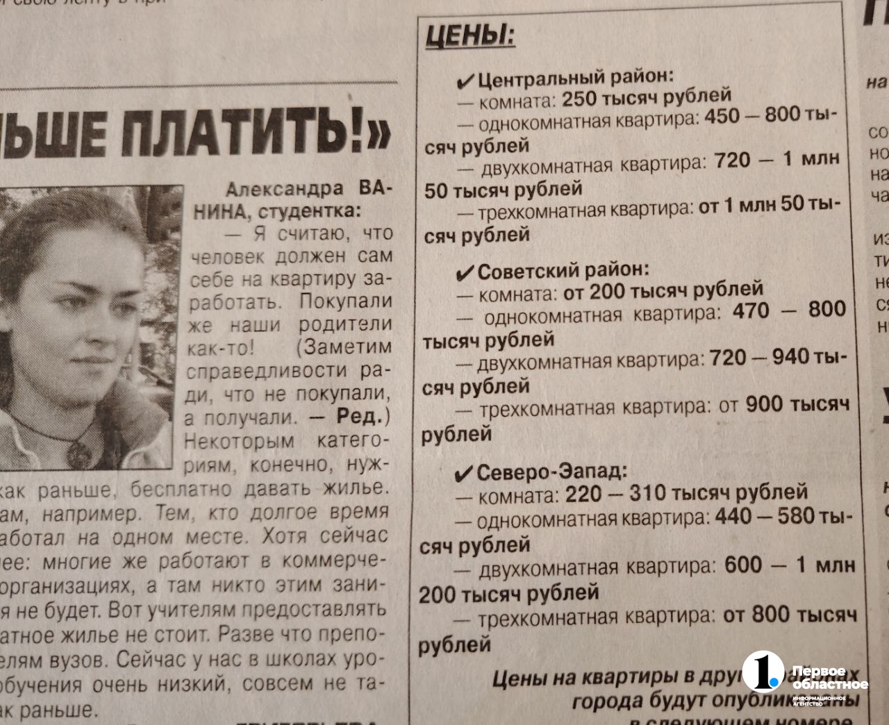 В сентябре 2004 года однокомнатную квартиру в Челябинске можно было приобрести в среднем за 600 тысяч рублей. Заметка с такой информацией попалась корреспонденту ИА «Первое областное» в газете «Вечерний Челябинск». Сейчас, в сентябре 2024 года, по данным «Авито Недвижимость», однокомнатная квартира в среднем стоит 5 миллионов рублей. Получается, что цены за 20 лет выросли на 800%.
