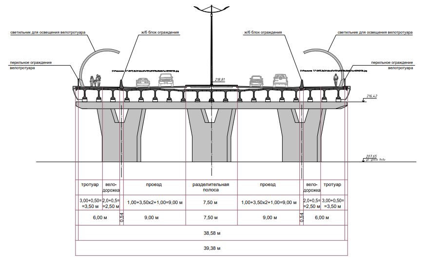 Согласно проекту, разработанному «УралДорПроектом», мост между улицами Энгельса и Краснознаменной будет иметь ширину чуть более 39 метров и длину 156 метров. Планируются четыре полосы движения шириной 18 метров и разделительная линия шириной 7,5 метра, которую в перспективе можно использовать под трамвайное движение. По бокам обустроят пешеходные и велосипедные дорожки. Предусмотрены лестничные подъемы и спуски от жилого комплекса «Западный луч», здания «УСТЭК-Челябинск», гаражей, а также со стороны улицы Братьев Кашириных. Не забудут и про комфорт для маломобильных граждан. Под путепроводом будет полноценный проход, подобный тому, что есть под мостом на Свердловском проспекте.