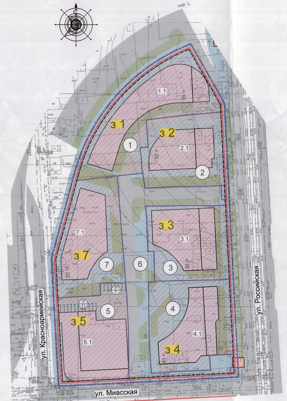 Кроме того, на участке в границах улиц Российской, Миасской и Красноармейской планируется возвести четыре пятиэтажных административно-деловых центра и трехэтажный торгово-развлекательный комплекс. У всех построек будут парковки — наземные и подземные. Всего на территории хотят организовать 229 машино-мест. Между зданиями будут не только стоянки, но и благоустроенные скверы. Построят ли эти объекты — неизвестно. Слушаний по ним было.