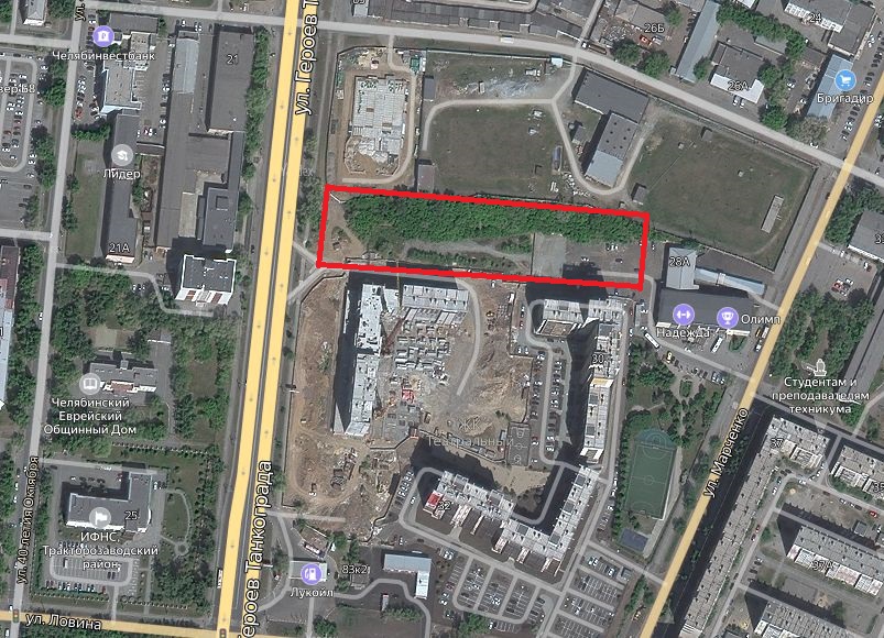 Администрация Челябинска опубликовала на своем сайте постановление о проведении публичных слушаний по проекту строительства двухэтажных торгового и развлекательного комплексов на улице Героев Танкограда. Судя по публичной кадастровой карте, участок под застройку находится между новым ЖК «Театральный» (застройщик — «КПДиСК») и стройплощадкой соборной мечети. Разрешенное использование — для размещения торгового комплекса с парковкой открытого типа.