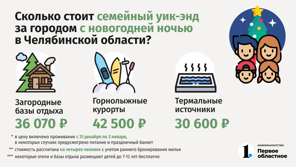 Готовь сани летом, а жилье за городом на новогодние праздники бронируй в сентябре. Если вы еще не задумывались, где проведете зимние каникулы, то через месяц может быть слишком поздно. Базы отдыха, санатории и горнолыжные курорты еще в августе открыли запись клиентов на Новый год. Цены ощутимо отличаются от обычных. Наценка доходит в среднем до 15—20%. Где-то свободные номера и коттеджи уже заканчиваются. Например, на термальных источниках «Александрия», в гостевом доме «Шале Тургояк», в парк-отеле «Резиденция 888» свободных мест на Новый год уже нет. Рассказываем, сколько стоит отметить главный праздник зимы на популярных загородных курортах Южного Урала. Сейчас еще можно выбрать подходящий вариант проведения каникул или выходных — это может быть активный отдых или спокойный — в гостинице или коттедже.