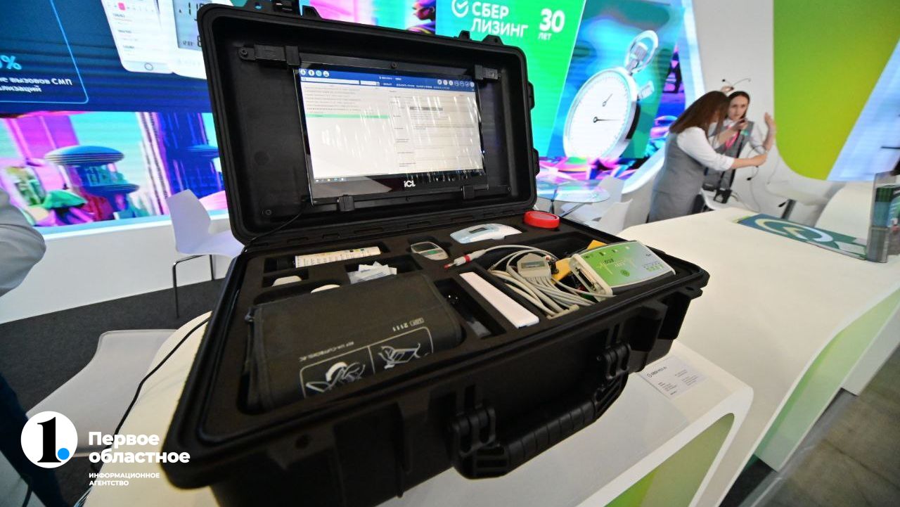 Сбер представил сервисы и услуги для бизнеса и частных клиентов. В их числе Edutoria — образовательная платформа для быстрого развития сотрудников, бесплатная «Школа 21», которая дает возможность всем желающим старше 18 лет стать ИТ-специалистами. «Школа 21», кстати, скоро откроется в Челябинске. Есть на стенде «Цифровой ФАП» от СберМедИИ — подключенное к интернету диагностическое оборудование, собранное в компактный кейс для его безопасной транспортировки и хранения, оригинальный тонометр от «СберЗдоровье», платформа синтеза и распознавания речи SaluteSpeech, сервис прогнозирования спроса от Сбер Бизнес Софт, нейросеть Kandinsky 2.1 для формирования изображения по ключевым словам. Стенд Сбера осмотрел и Алексей Текслер. В частности, ему представили «Цифровой ФАП».
