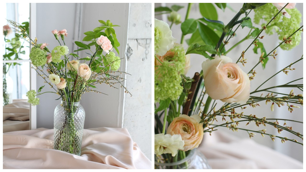 В многосоставных букетах флористы рекомендуют делать акцент на цвет «шартрез» — светло-зеленый оттенок свежей травы.