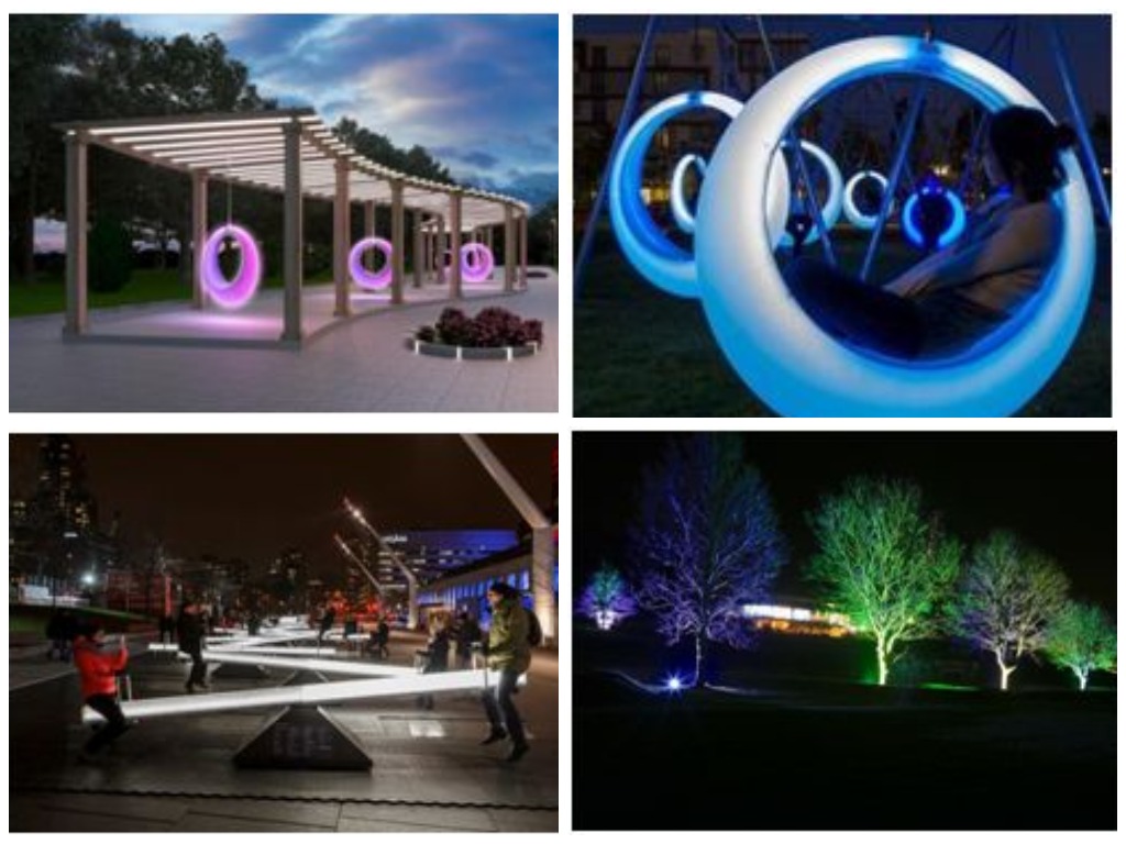 Техзадание предусматривает установку возле органного зала пяти световых скамей, четырех световых качелей и перголы с пятью световыми качелями. Первые изделия должны быть выполнены из светопластика, вторые — из стали со светодиодной подсветкой. Металлическая пергола будет высотой от 3,5 м до 4,1 м, длиной — от 19,3 м до 20 м. Качели для нее диаметром 130—160 см должны быть из антивандального пластика. В парке Калининского района появятся прожекторы для разноцветной подсветки деревьев и светодиодная гирлянда на опорах с теплым белым свечением. Работы следует выполнить до 15 декабря.
