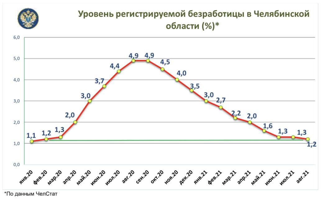 В Челябинской области самый высокий уровень безработицы в текущем году был зафиксирован в января — 3%. В 2020 году показатель был пиковым в августе и сентябре — 4,9%.