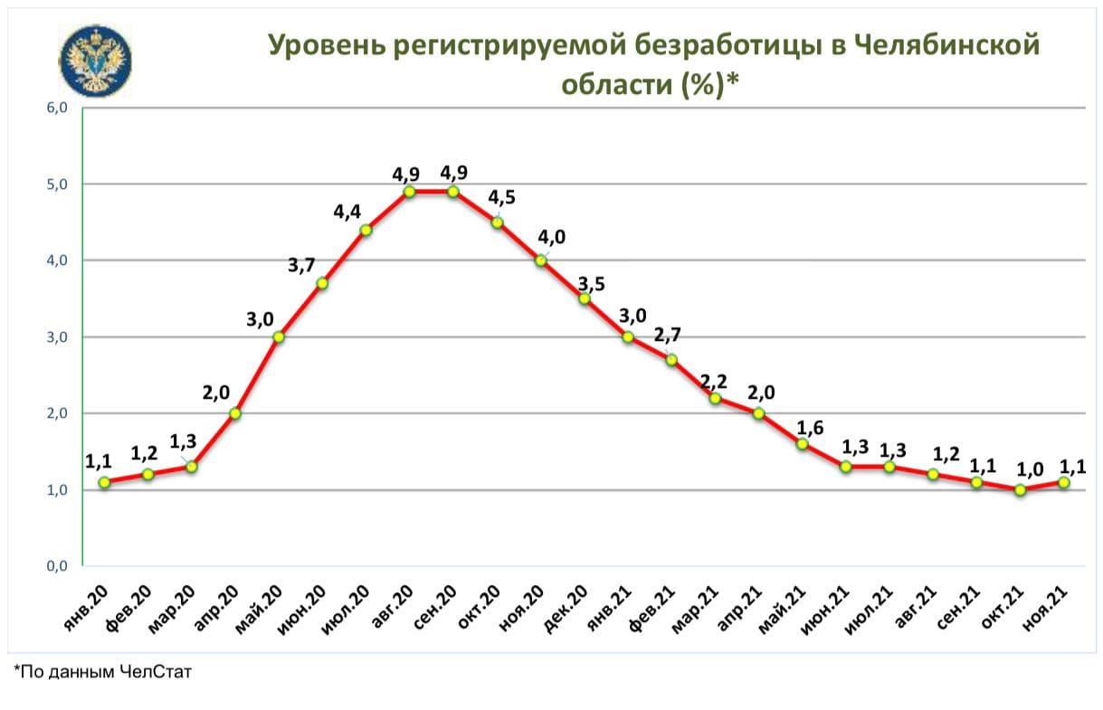 По состоянию на 1 декабря уровень безработицы в Челябинской области составил 1,1%. По сравнению с аналогичным периодом прошлого года это в 3,1 раза меньше. На конец ноября в регионе было зарегистрировано 20,5 тыс. безработных. Данные сообщает пресс-служба Главного управления по труду и занятости населения Челябинской области.