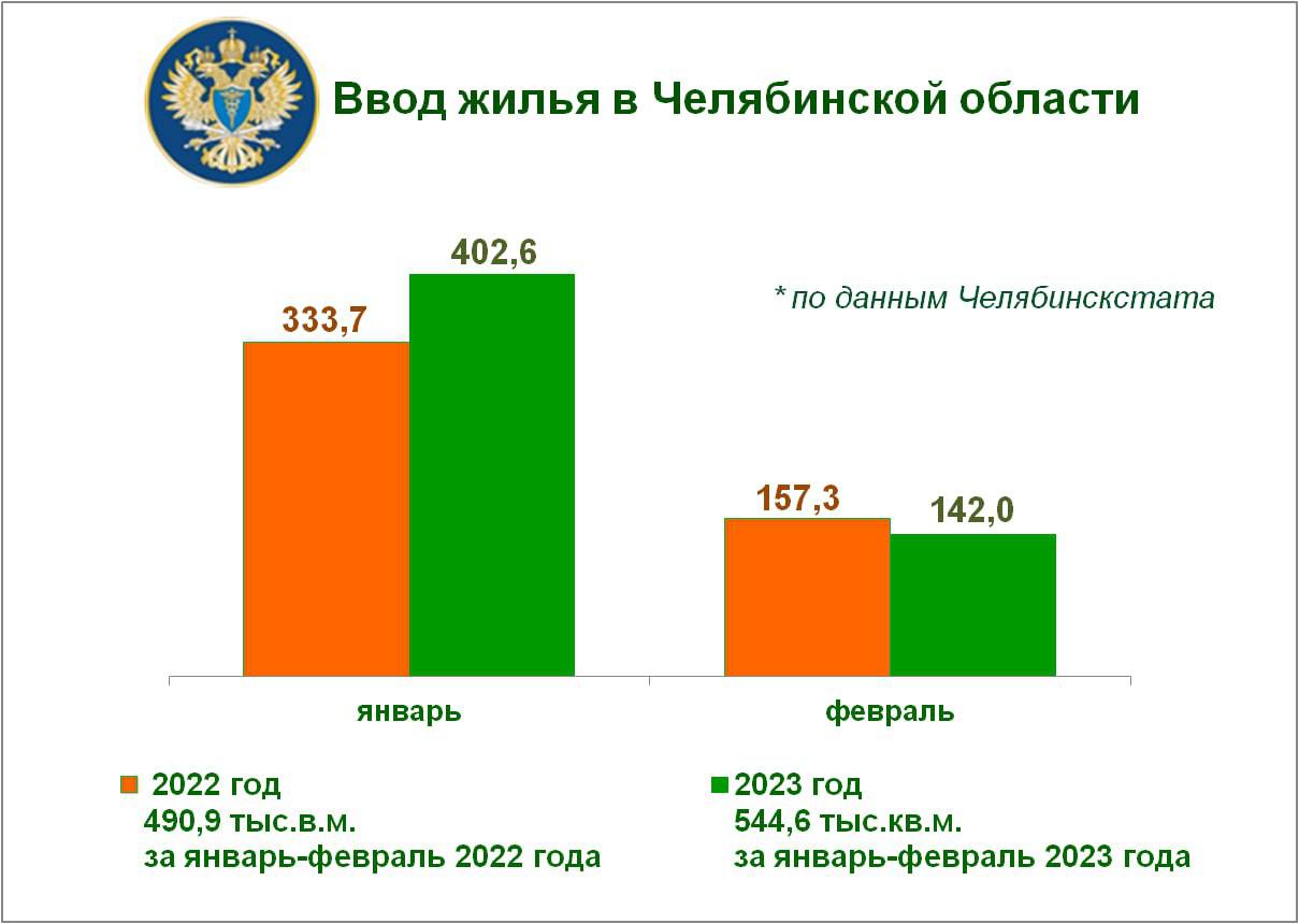 За январь — февраль нынешнего года в Челябинской области введено 544,6 тыс. кв. м жилья. Это на 10,9% больше, чем за аналогичный период 2022 года. Данные сообщает Контрольно-счетная палата на основе анализа отрасли по состоянию на 1 марта 2023-го.