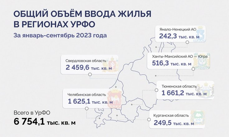Добавим, что за январь — сентябрь в Уральском федеральном округе новых проектов строительства многоквартирных домов заявлено на 3,73 миллиона квадратных метров (на 39% больше, чем за аналогичный период прошлого года).