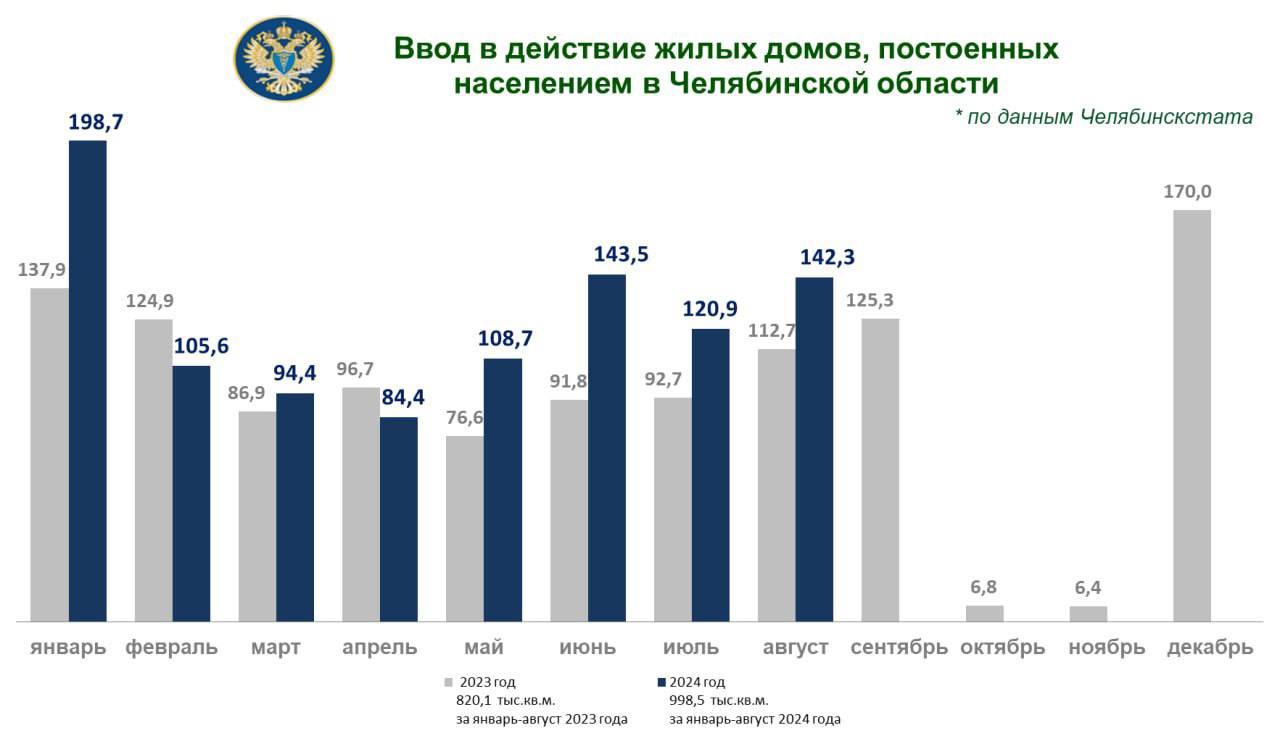 В Челябинской области в январе — августе 2024 года введено 998,5 тысячи квадратных метров индивидуального жилья, что на 21,8% больше, чем за аналогичный период прошлого года, сообщает Контрольно-счетная палата региона.