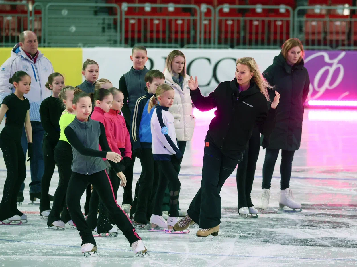 В Челябинск прибыли звезды мировой величины — мастер-класс для юных фигуристов дали титулованная спортсменка Александра Трусова, а также знаменитый тренер Этери Тутберидзе. Они вышли на лед, чтобы своим примером показать, как исполнять сложные технические элементы, отработали с ребятами навыки скольжения на льду. За всем этим процессом внимательно наблюдал наш фотокорреспондент.