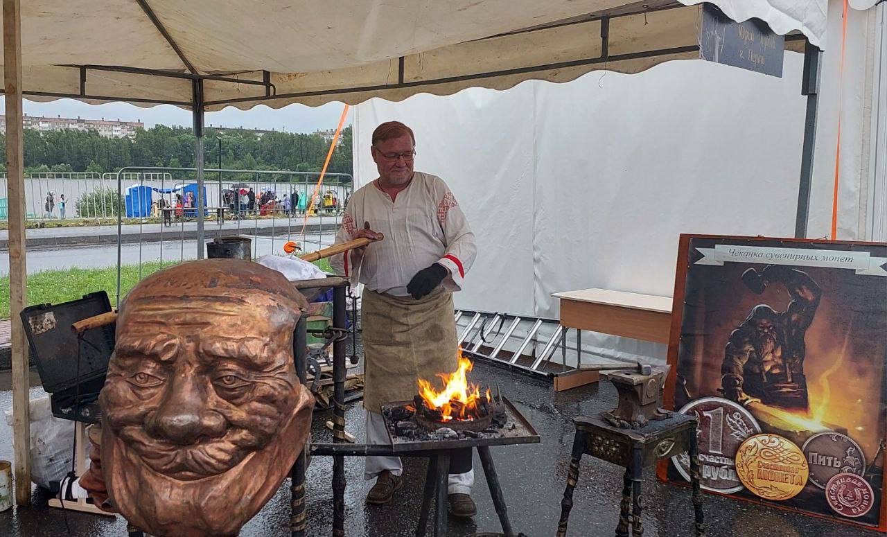 На площадке «Деревня кузнецов» работает выставка изделий из металлолома и других материалов. И взрослые, и дети могли научиться плавить кричное железо и создавать кованые композиции.