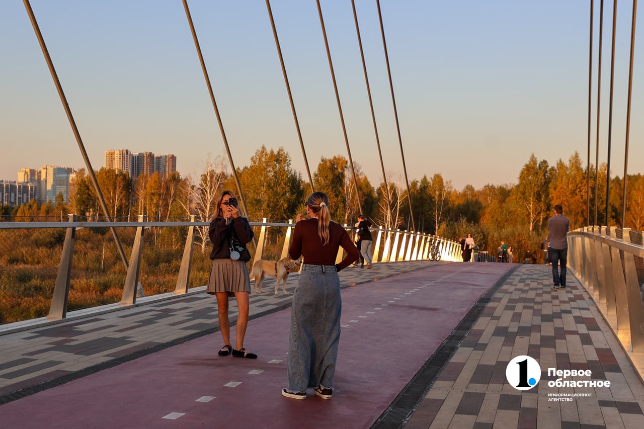Еще одна красивая осенняя локация — мосты. Например, новенький вантовый мост через реку Миасс — уверены, что не все еще успели по нему прогуляться. Сами челябинцы доказывают, что это красивое место для снимков: не зря же эти две девушки с нашей фотографии решили наделать здесь контента для соцсетей.