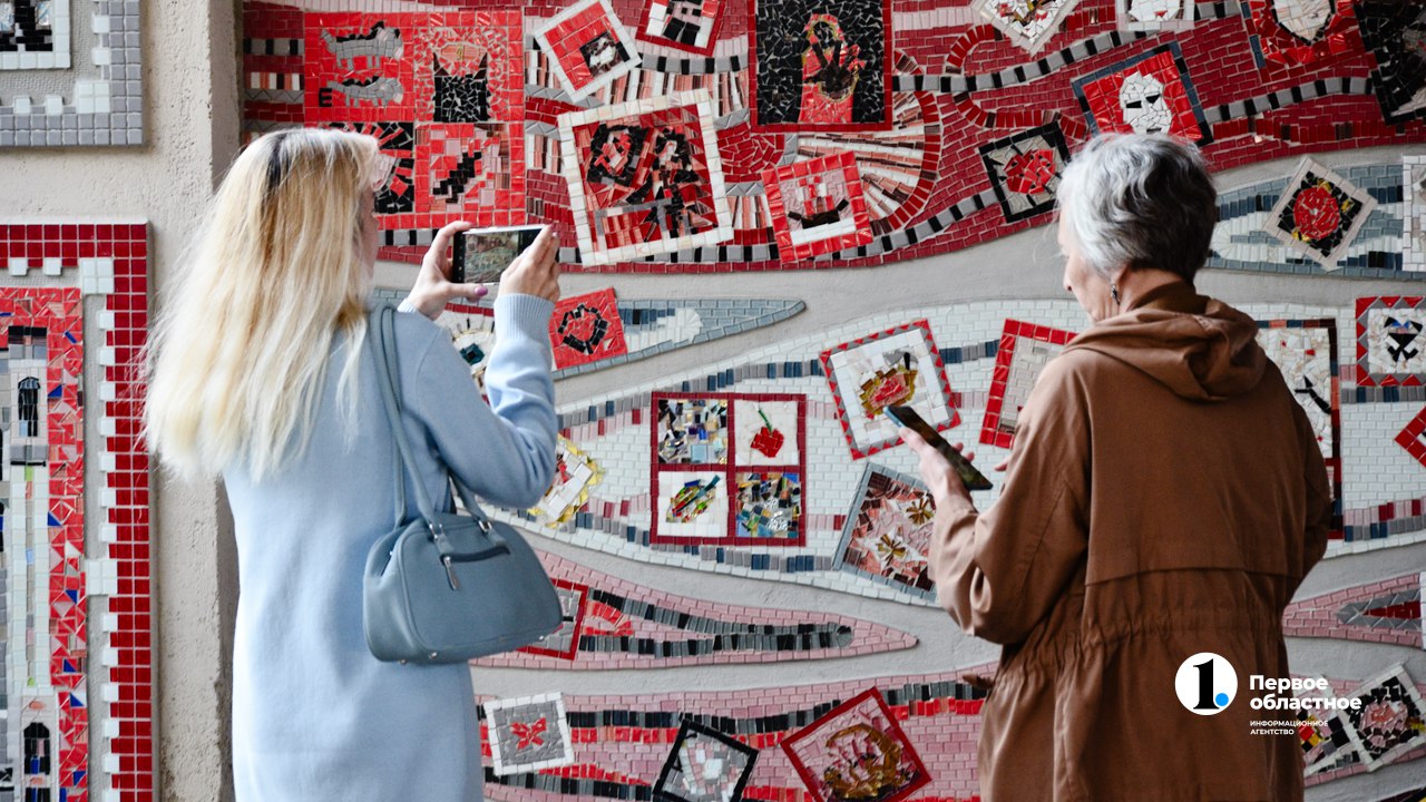 Сразу отправимся в самое сердце города: яркая локация есть в доме на Коммуны, 69, она даже так и называется — «Яркий след». Разноцветное панно появилось осенью прошлого года, но мы уверены, что кадры на фоне мозаичных котиков, достопримечательностей города и сердечек есть еще не у всех.