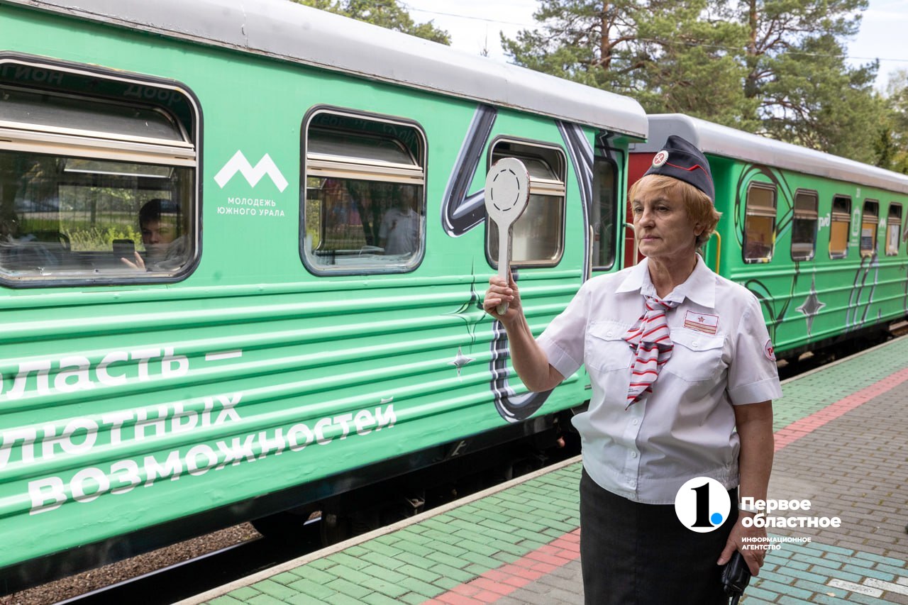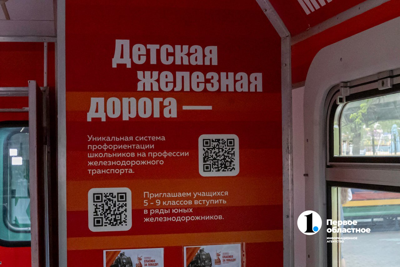 «Вагоны посвящены двум темам: 80‑летию Победы в Великой Отечественной войне и молодежному движению Челябинской области. Внутри — QR‑коды, которые ведут к информации о грантах, учебных заведениях и общественных организациях региона. Сегодня мы состав презентовали, наши юные железнодорожники впервые его увидели и уже сканировали QR‑коды. Значит, эта инициатива не напрасна», — говорит начальник ЧДЖД Максим Золотухин.