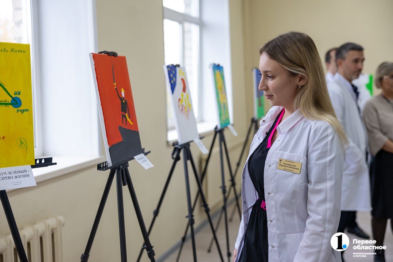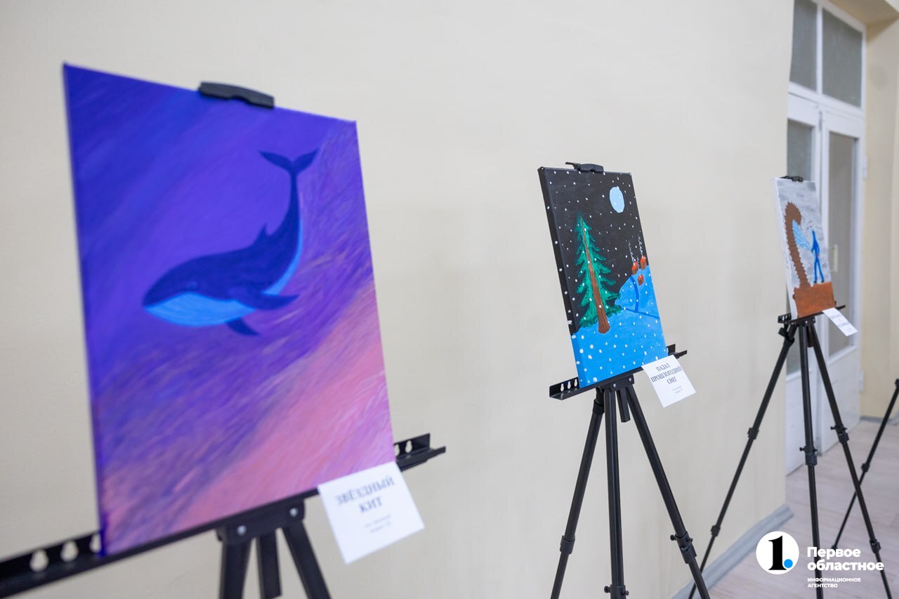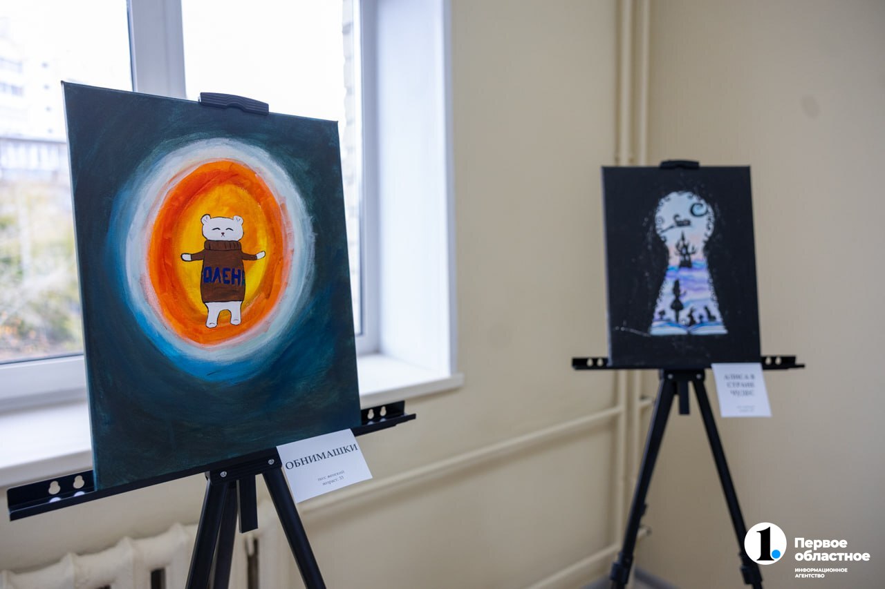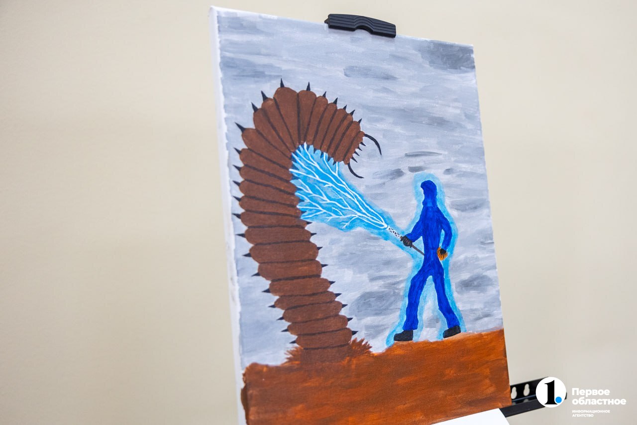 Рыцарь, взмахивающий мечом, Алиса Селезнева в космосе, воин, убивающий огромного червя, как из «Дюны». Пара десятков картин расставлена в небольшом выставочном зале больницы. Их объединяет тема экспозиции — «Мой внутренний сказочный герой». Какие-то работы не требуют объяснений, какие-то вызывают искреннее недоумение. Здесь узнаваемые герои книжек и мультиков переплетаются с чем-то необъяснимым: вот холст полностью закрашен зеленым карандашом, а здесь разбила свой лагерь армия человечков, точнее «челабучков».