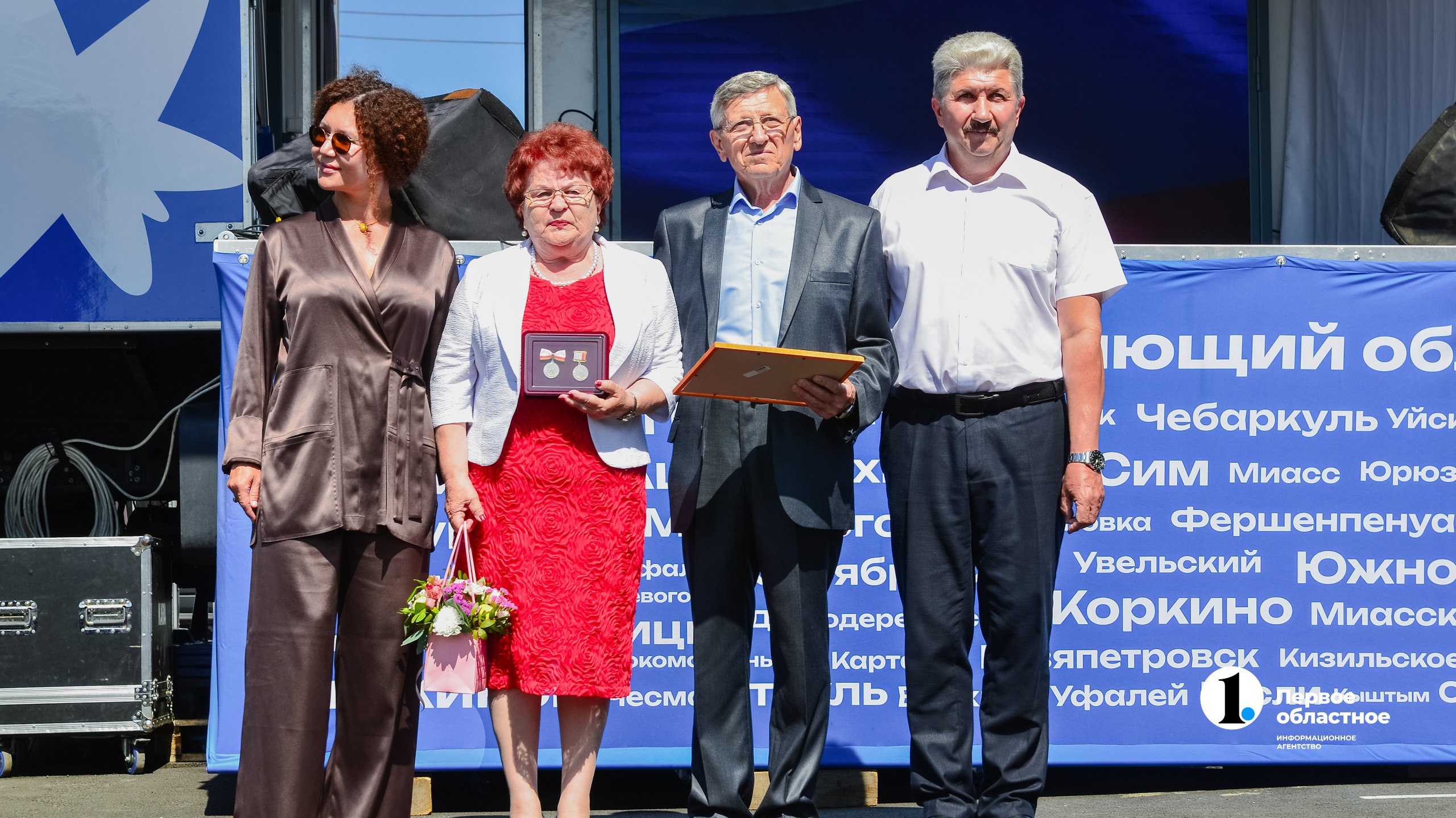 Она также поздравила пары, которые сегодня получили награду «Семейное счастье», учрежденную в Год семьи по инициативе губернатора Челябинской области Алексея Текслера. Награждаемых пар сегодня было пять: это Алексей и Людмила Чукановы (семейный стаж 58 лет), Евгений и Нина Уте (55 лет), Александр и Нина Усовы (52 года), Николай и Людмила Савенковы, а также Владимир и Галина Юстус, в прошлом году отметившие золотую свадьбу.
