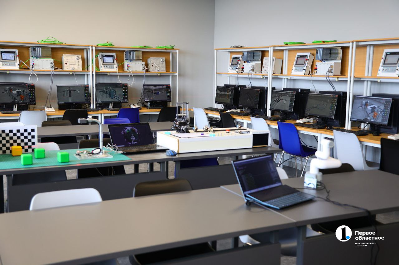 После церемонии открытия факультета Алексей Текслер пообщался с преподавателями и студентами, ознакомился с техникой и возможностями направления, а также осмотрел аудитории. Экскурсию по ним провел робот-экскурсовод.