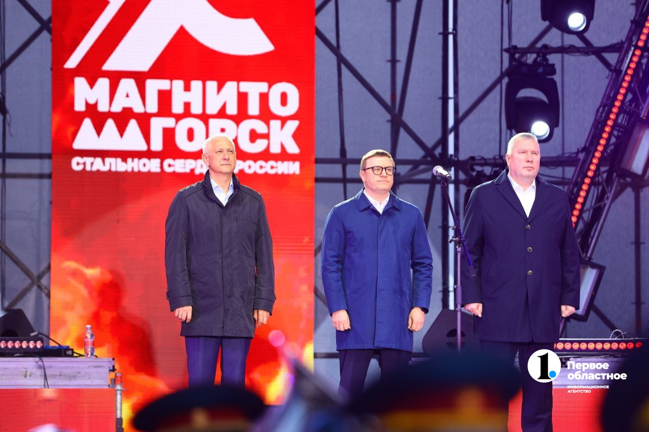 На главной площадке возле реки Урал губернатор Алексей Текслер обратился с приветственным словом к жителям города. Он отметил, что история Магнитогорска — это прежде всего история людей. Тех, кто строил город и комбинат, кто ковал меч Победы в годы Великой Отечественной войны и кто строил и развивал город после.