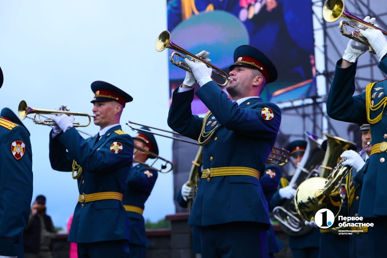 Для горожан выступили артисты, военный оркестр войск Росгвардии под управлением подполковника Игоря Вараксина.