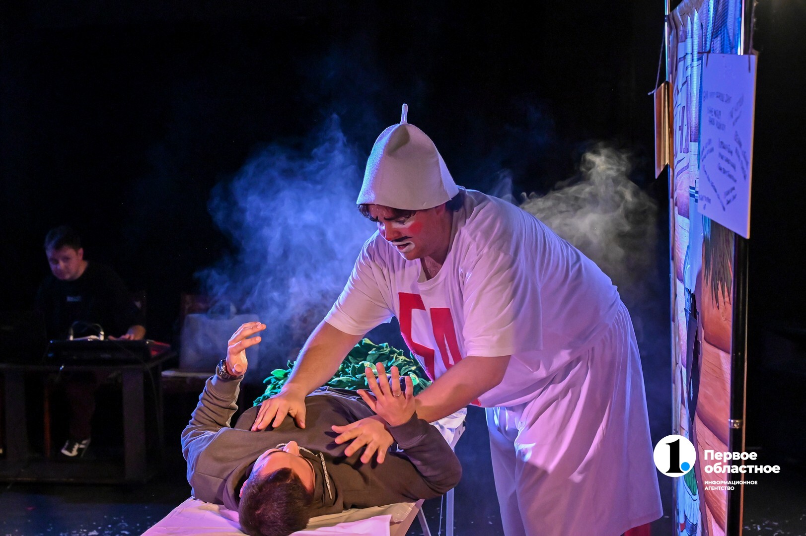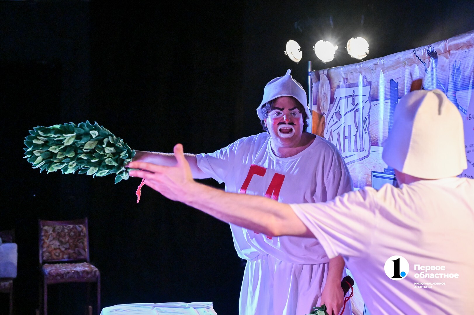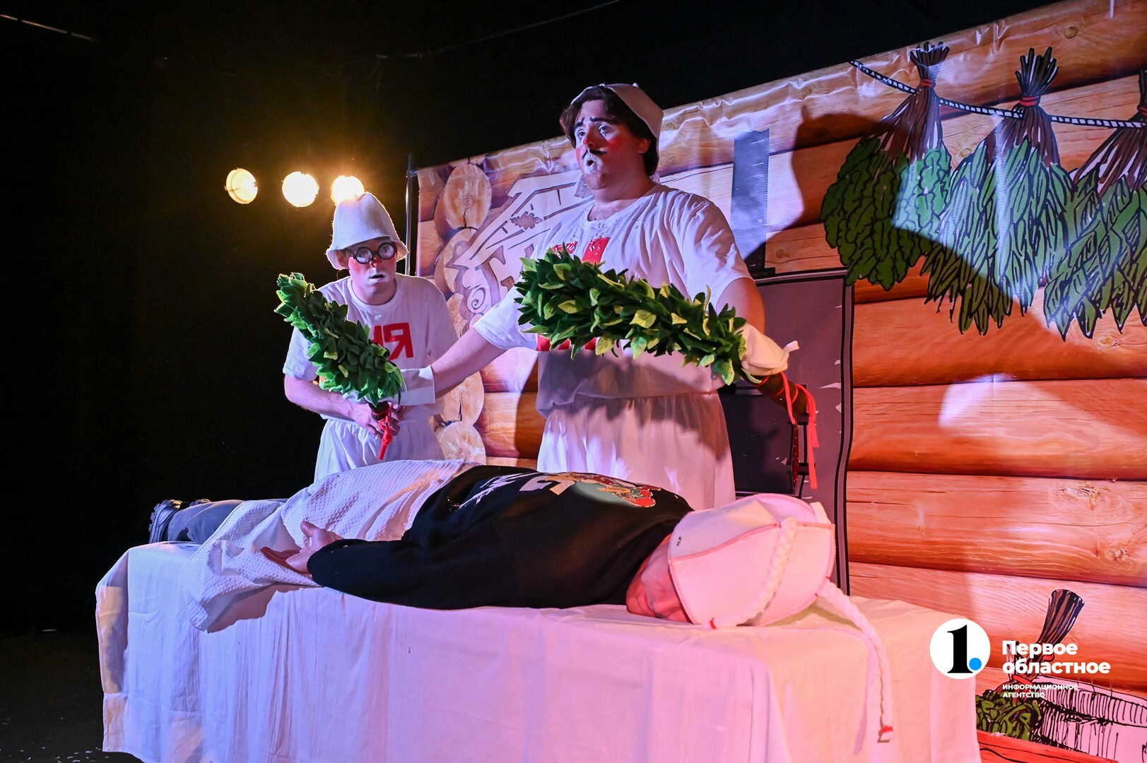 Авангардный театральный дуэт NEBOLET показал челябинцам премьерную постановку «Иди в баню». На сцене выступили артисты Станислав Хомков и Никита Манылов. Они вновь побелили лица, нарисовали красные носы и приступили к доброму хулиганству. Их клоунадная притча на этот раз была посвящена традиционному для многих россиян походу в баню.