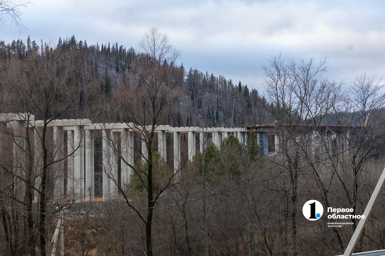 Во время первой поездки на эстакаду журналистов подвозили к стройплощадке прямо у Кропачево — в начале возводимого с нуля 19-километрового участка трассы. Теперь же, чтобы добраться до места работ, нужно огибать весь Сим — настолько продвинулась стройка. По сути, дорожники создали заезд и выезд с эстакады, а сейчас занимаются ее серединкой. И как раз эту работу не видно с проезжающих мимо машин: она остается за лесом и горами, которые приходилось буквально «пилить надвое».