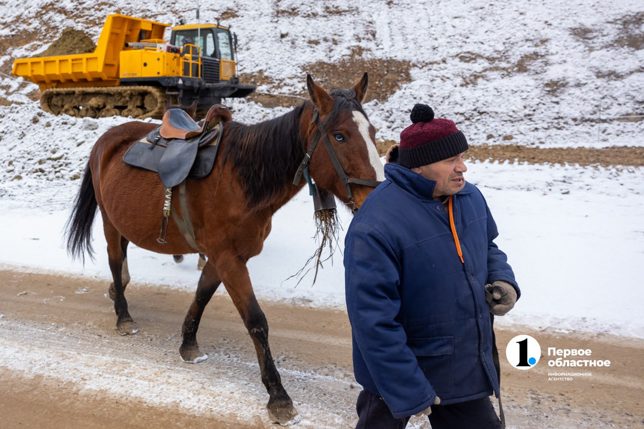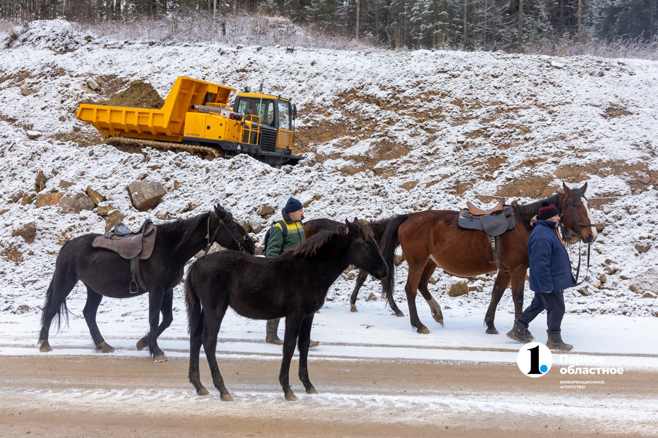 Кстати, первых водителей на эстакаде уже можно увидеть, правда, не привычных автомобилистов. Житель Сима решил с молодыми лошадками пройтись по этому участку до города. Хоть он и коневод, но проблемы водителей авто ему не чужды: