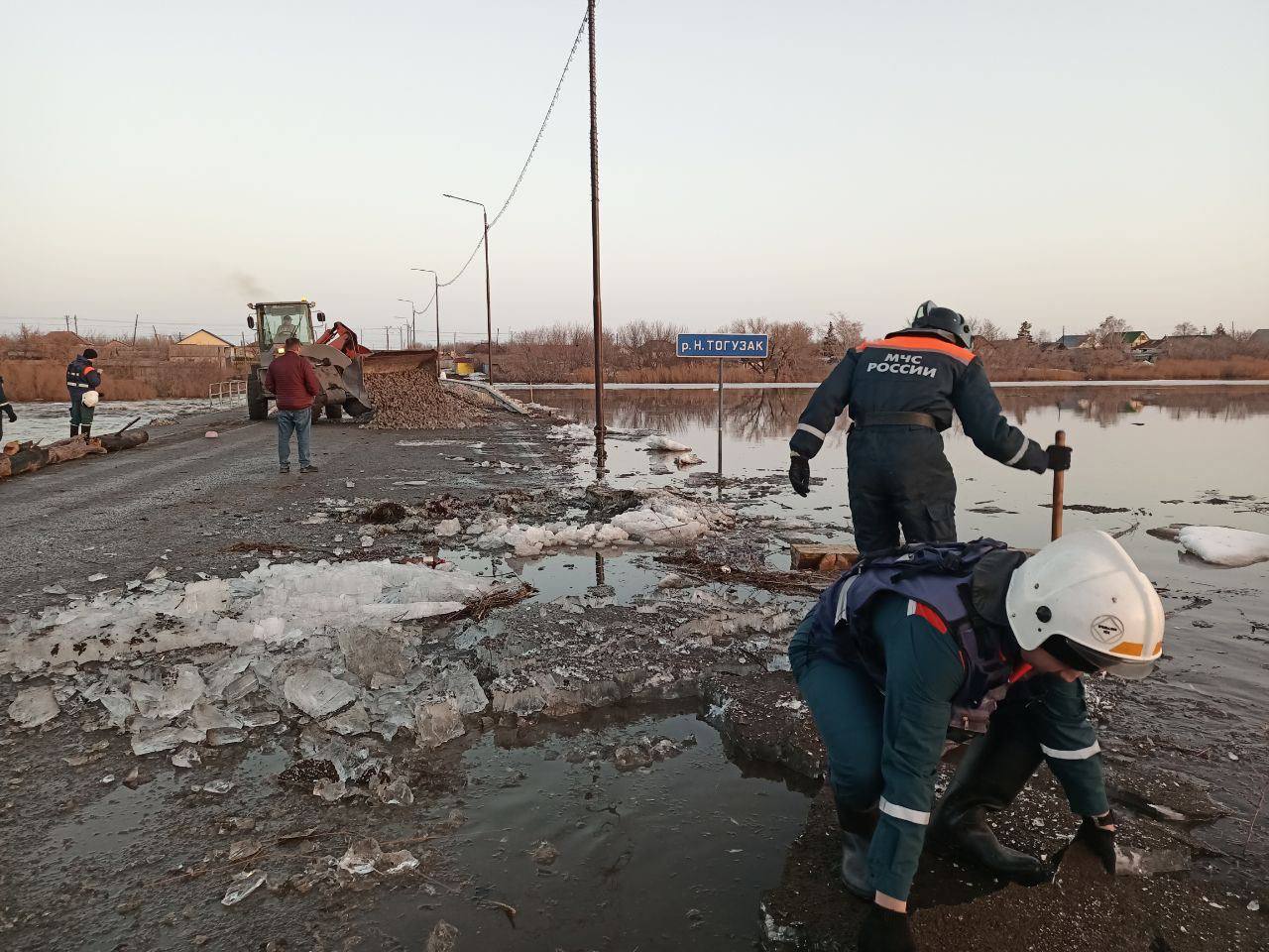 С момента начала вскрытия рек области ото льда спасатели областной ПСС круглосуточно выезжают для осмотра опасных участков, в местах, где паводковые воды достигают критических отметок, а также по мере необходимости оказывают помощь жителям оказавшихся в вынужденной изоляции населенных пунктов. Так, в Пластовском районе в результате разлива реки Курасан оказался подтопленным участок автодороги между селами Степное и Степнинское: бурный поток разрушил и снес часть асфальтового покрытия, сделав невозможным передвижение автотранспорта. В пятницу, 5 апреля, днем спасатели Троицкого отряда областной ПСС передали главе села Степнинского мотопомпы.