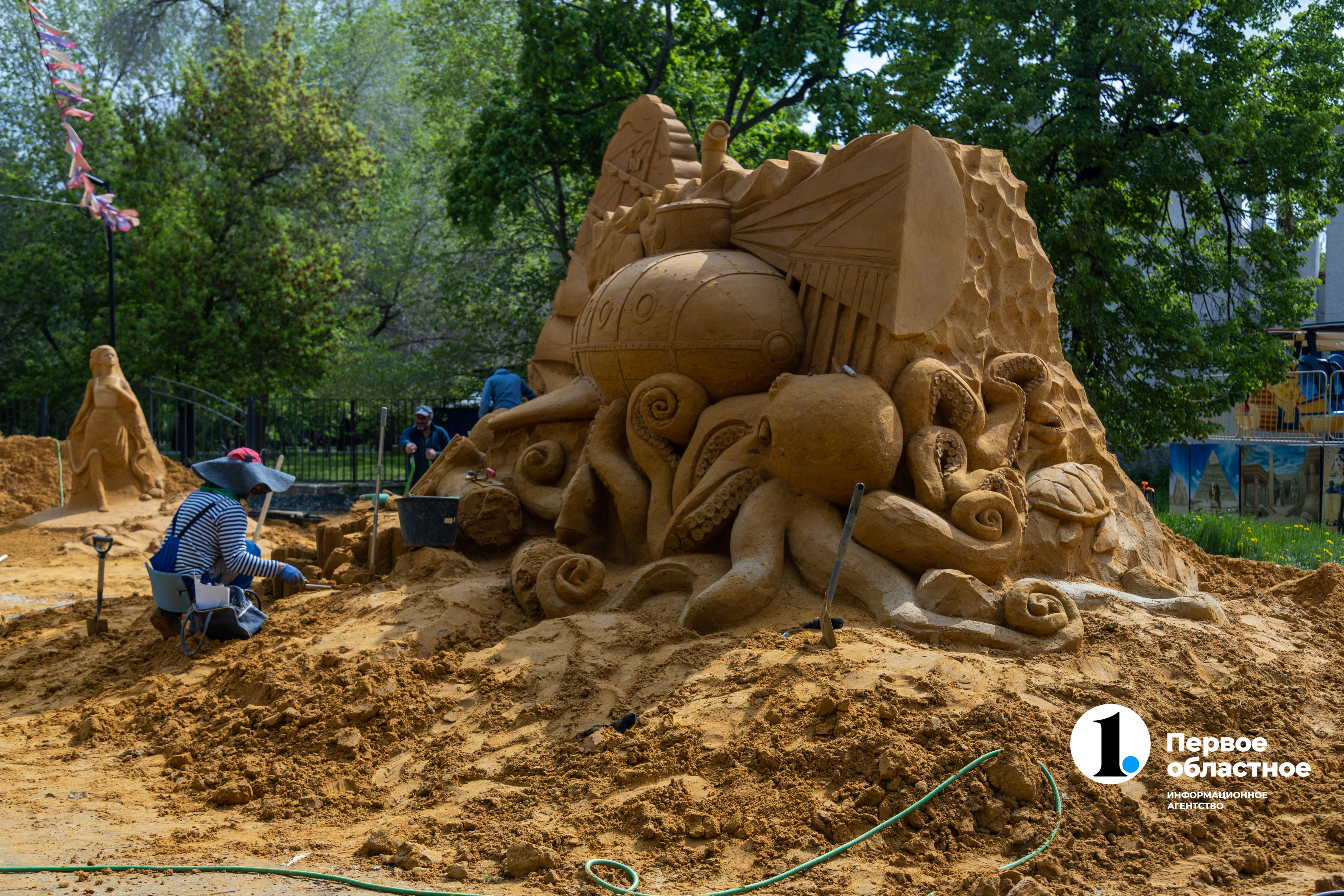 В парке Пушкина в Челябинске полным ходом идет подготовка к новому сезону фестиваля песочных скульптур. Пять объектов мастера возводят с нуля, еще семь восстанавливают с прошлого года и стараются успеть к открытию. Наш фотокорреспондент понаблюдал за работой специалистов, а мы делимся его красивыми снимками.