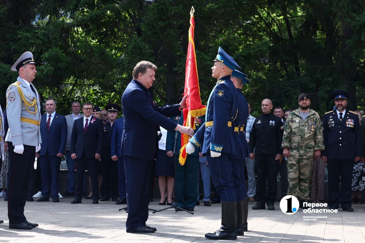 В День России в Челябинске состоялась передача 14 копий боевых знамен воинских частей и соединений, сформированных на территории области в годы Великой Отечественной войны, на памятное хранение в организации и учебные заведения, где на протяжении многих лет активно ведется военно-патриотическая работа.